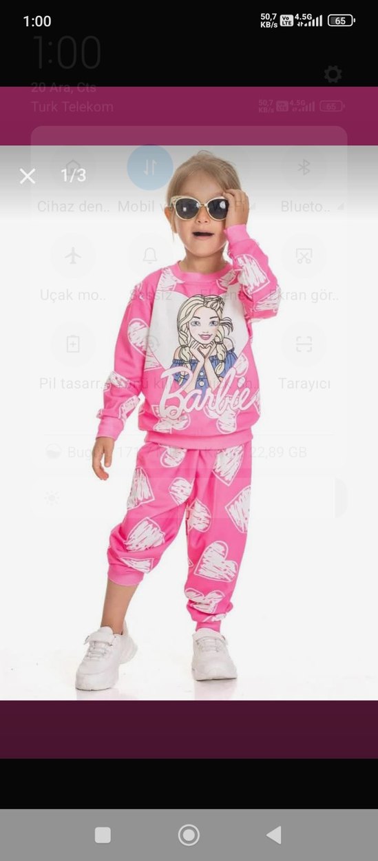 Pembe Barbie Baskılı Kız Eşofman Takımı