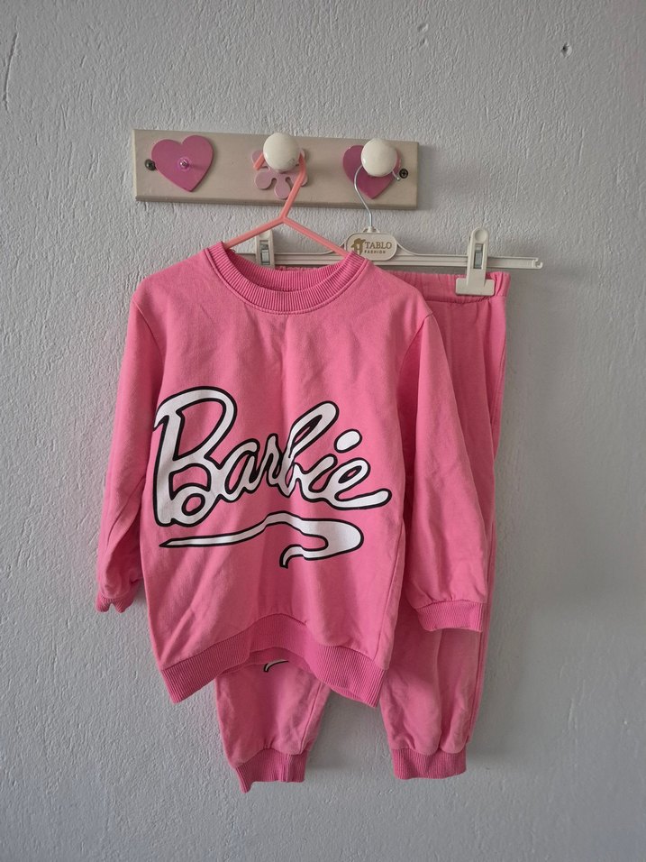 Pembe Barbie Baskılı Kız Eşofman Takımı