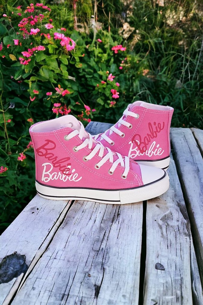Pembe Barbie Baskılı Yüksek Top Kadın Spor Ayakkabı