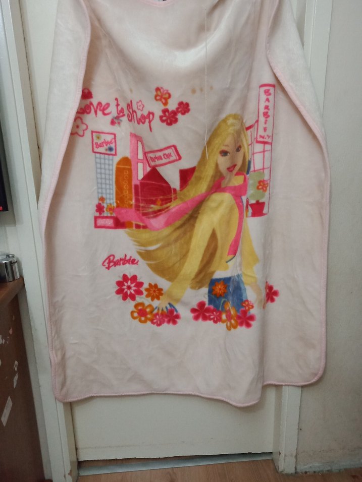 Pembe Barbie Desenli battaniye