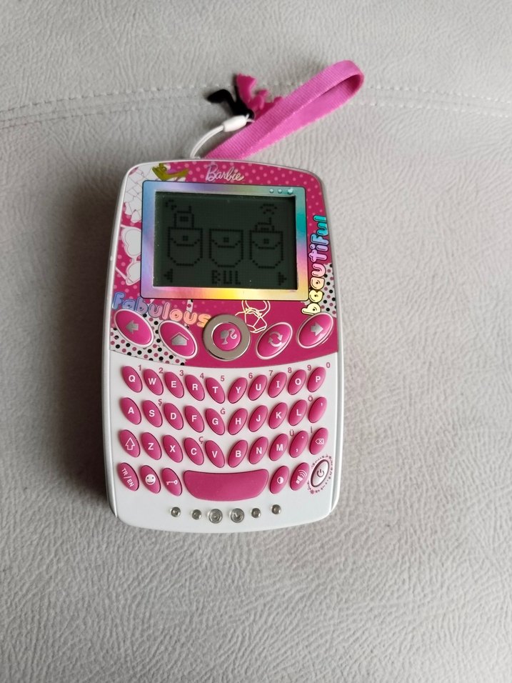 Pembe Barbie eğitici oyuncak, renkli tasarımı, küçük ekranı ve tam QWERTY klavyesi ile etkileşimli öğrenme sunar. ingilizce-türkçe dil seçimi var. içinde harfler sayılar kelimeler eşleştirmeler gibi değişik oyunlar olan öğretici bir oyuncak ses ayarı yapılabiliyor hiç kullanılmadı tertemiz videodan da detaylarına bakabilirsiniz. Barbie temalı