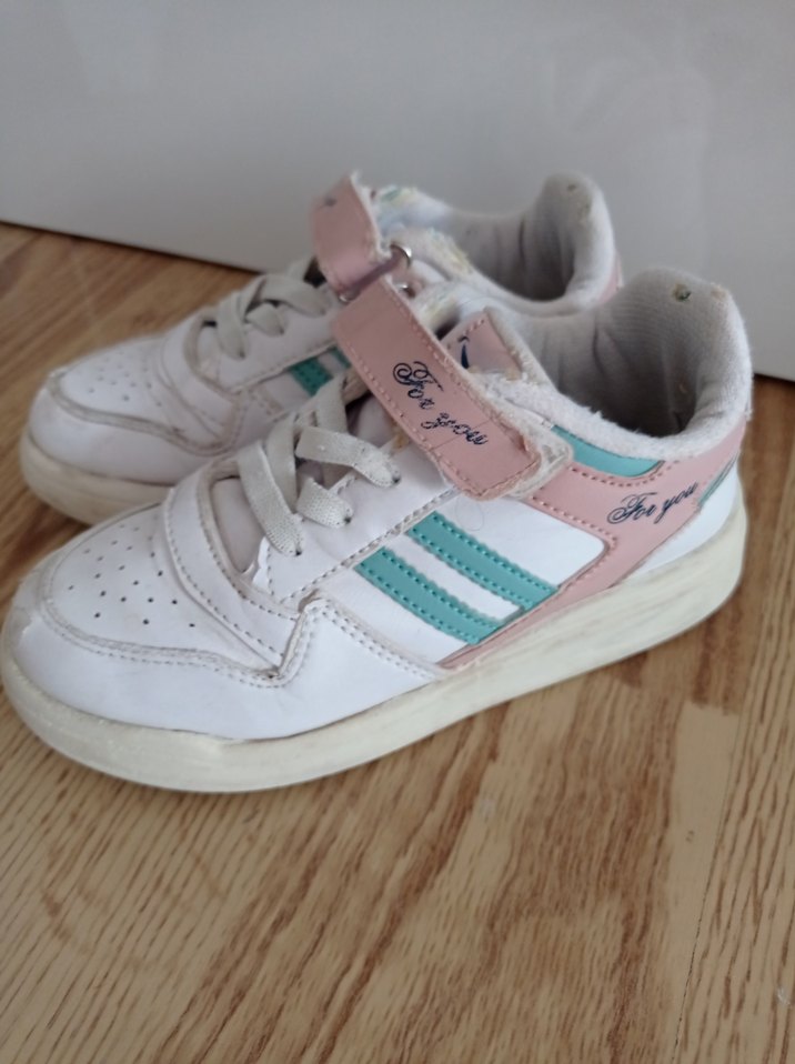 Pembe baskılı detaylara sahip, bağcıklı kız çocuk spor ayakkabısı, pastel renklerde ve kauçuk tabanlıdır.