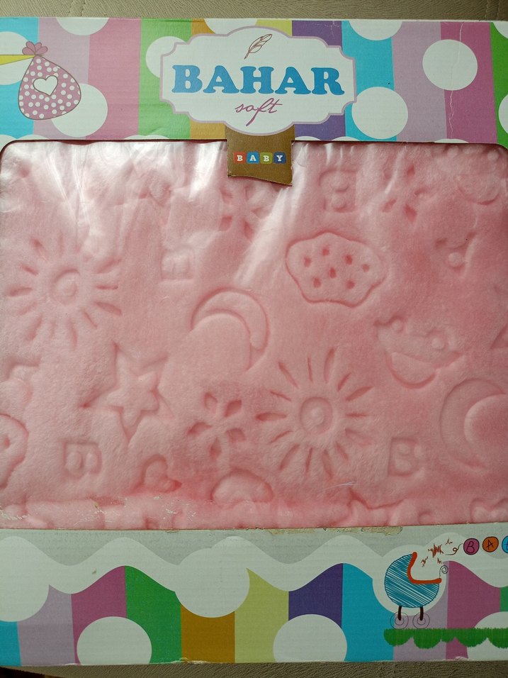 Pembe renkli, kabartmalı gökyüzü desenli bebek battaniyesi. BAHAR markalı, yumuşak ve konforlu çocuk battaniyesi.
