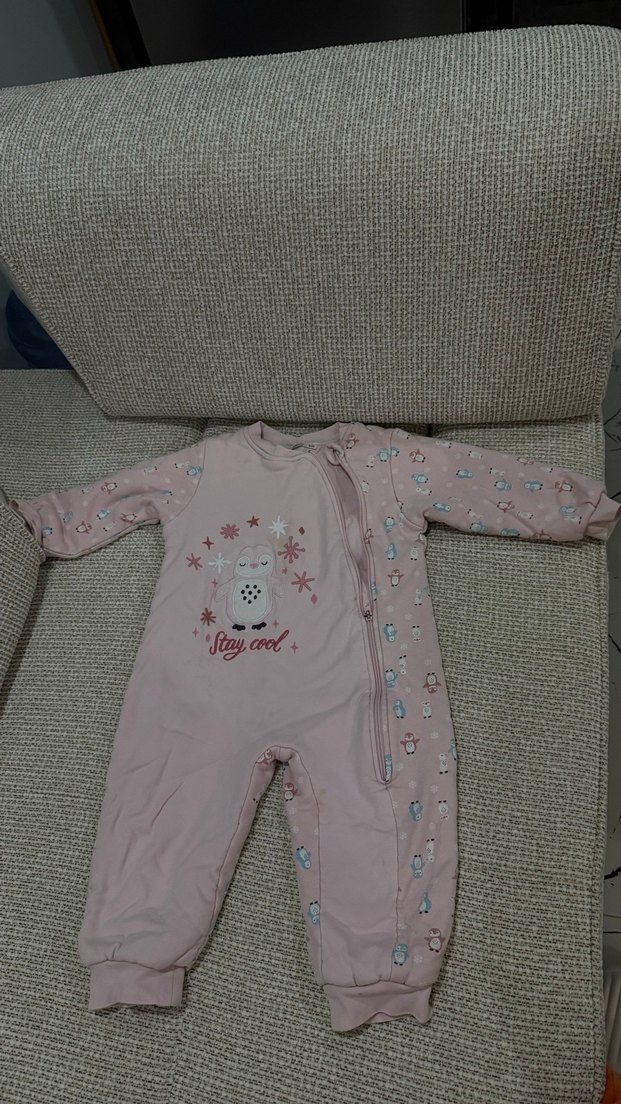 Pembe pastel renkli, baskılı, fermuarlı bebek kız tulumu. Yuvarlak yaka ve yumuşak dokusu ile rahat kullanım sağlar. 'Stay' yazısı bulunur. ❄️