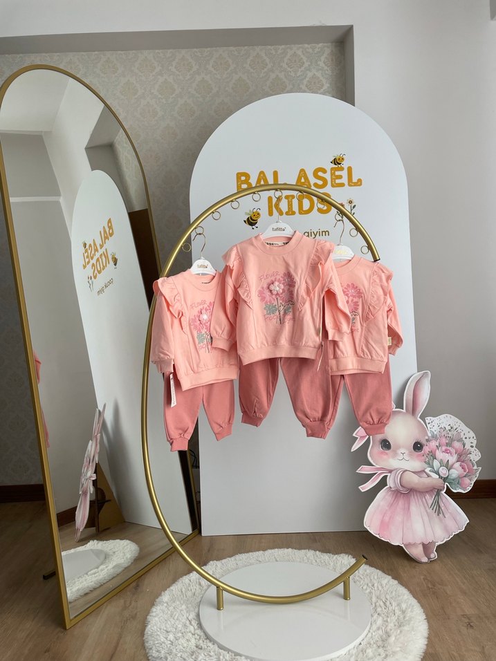 Uzun kollu, pembe baskılı bebek kız takımı, fırfır detaylı ve yumuşak kumaşlıdır. Marka: BALASÉL KIDS. 12Y18ay24ay bedenleri mevcut sabit fiyat indirim talep etmeyiniz