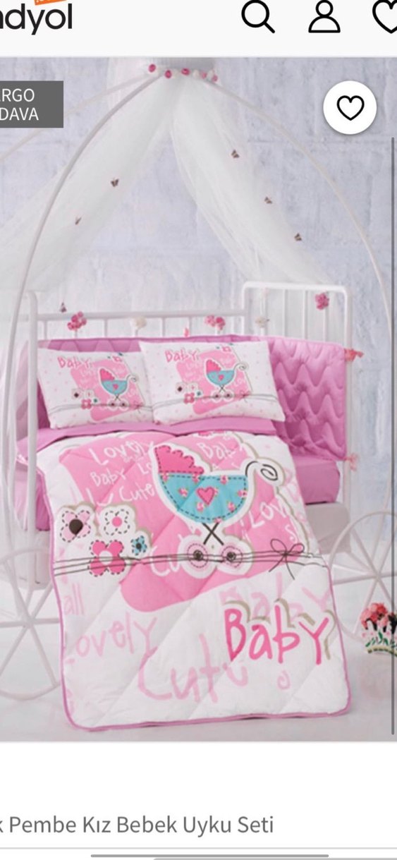 Pamuklu pembe bebek uyku seti, pastel tonlarda baskılı desenlere sahip ve "Baby" yazısı içerir. Kenar korumalikli tam set