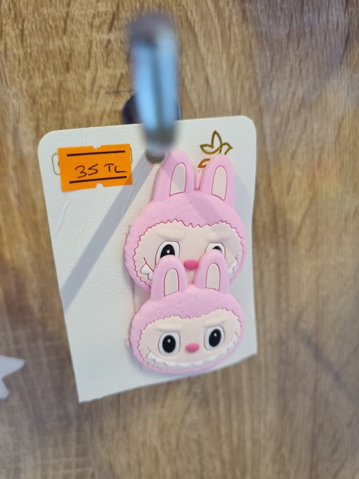Pembe baskılı, cırt cırtlı çocuk saç tokaları seti, retro ve bohem tarzda sevimli tavşan figürlü.