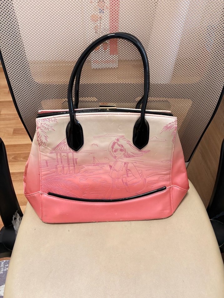 Pembe deri kadın çanta, pastel baskılı deseni ve fermuarlı cepleriyle Parisli karşı kültür stilini yansıtıyor. Matmazel marka sıfır kullanım hiç kullanılmadı fakat kırıldı durduğu yerde