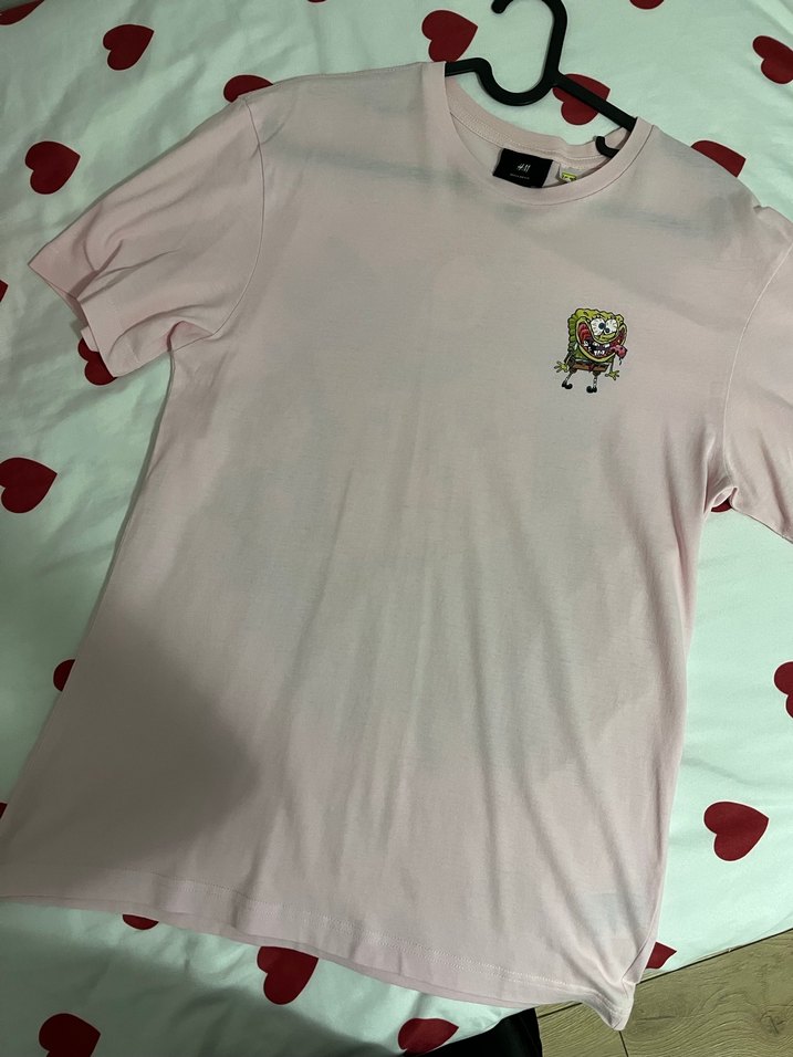 Pamuk kumaştan yapılmış, baskılı desenli, pembe renkli, kısa kollu, bol kesim erkek tişörtü. Günlük kullanıma uygun rahat bir sokak stili sunar.