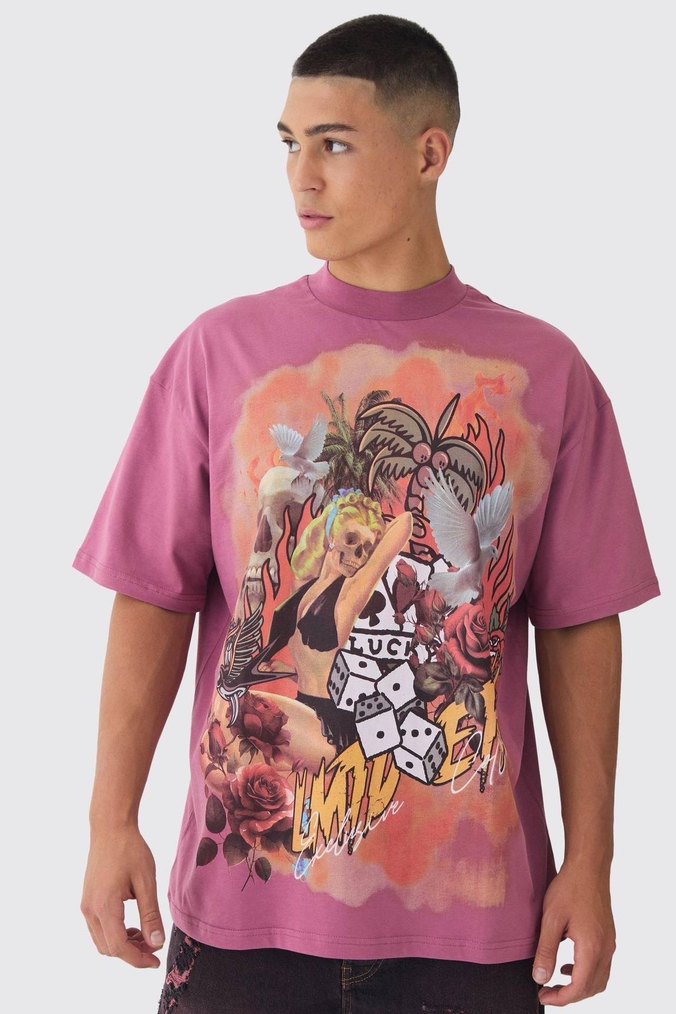 Pembe Baskılı Erkek Tişört