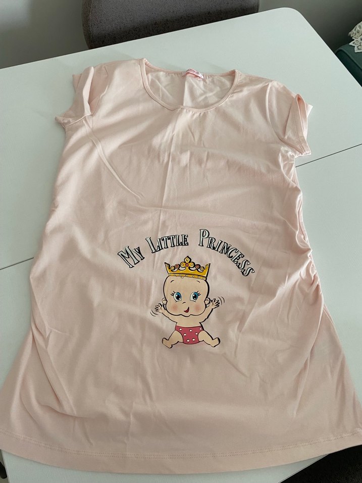Yumuşak sentetik kumaştan yapılmış, kısa kollu ve bisiklet yaka, pembe baskılı hamile tişörtü. "My Little Princess" baskılı bebek figürü bulunur. Günlük kullanım için uygundur.