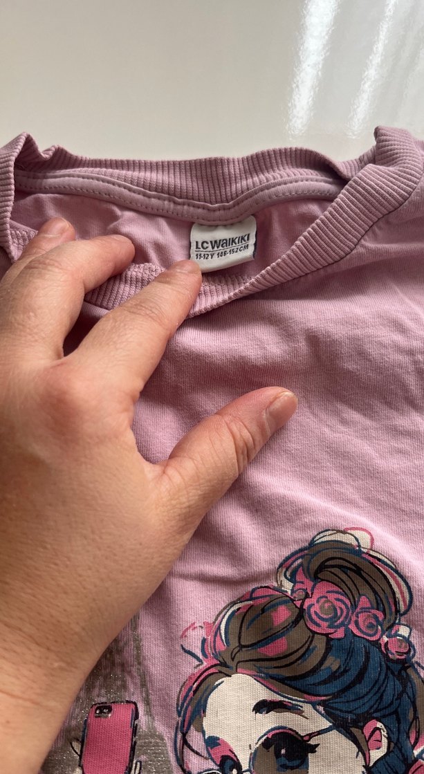LC Waikiki marka, düğmeli, uzun kollu, baskılı, pembe hamile tişörtü. Normal uzunlukta, vücuda oturan kesim, sentetik kumaştan yapılmıştır.