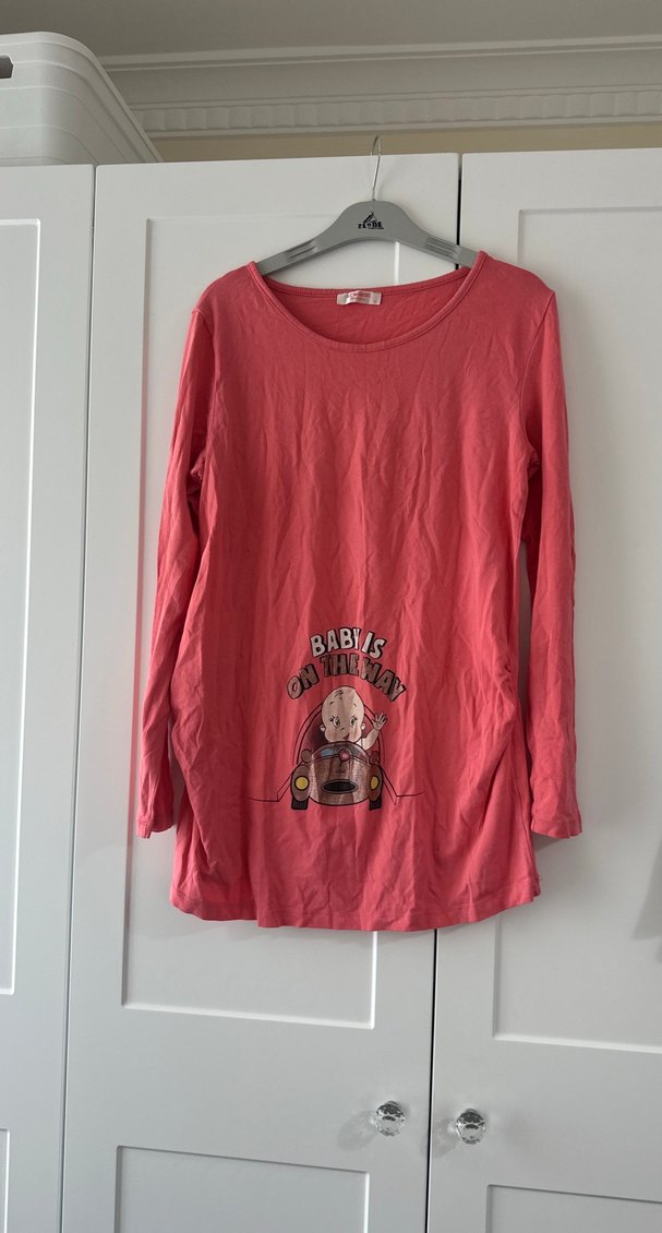 Pembe Baskılı Hamile Uzun Kollu Bluz