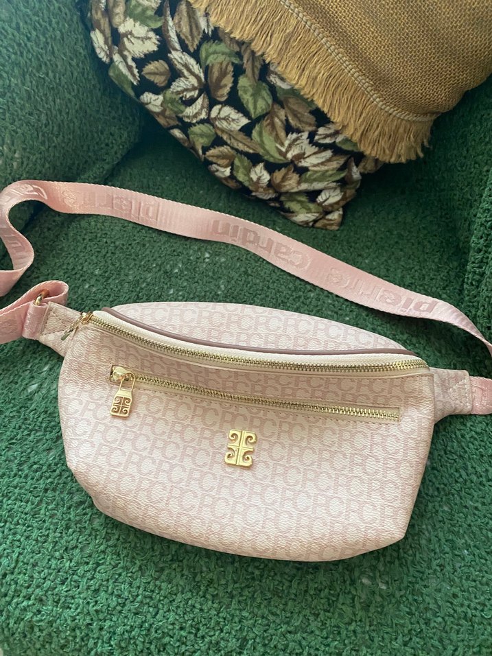 Sentetik kumaştan, baskılı desenli ve kemer askılı pastel pembe kadın bel çantası. Trendy casual ve athleisure tarzlara uygundur. Ürün 1-2 kez kullanılmış yeni gibidir.