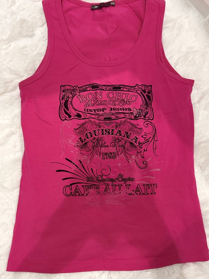 Pamuk pembe renkli, baskılı ve dar kesim kadın atlet y2k s bedene uygun ben 46 kiloyum vücudumu sarıyor esnek kumaş baya