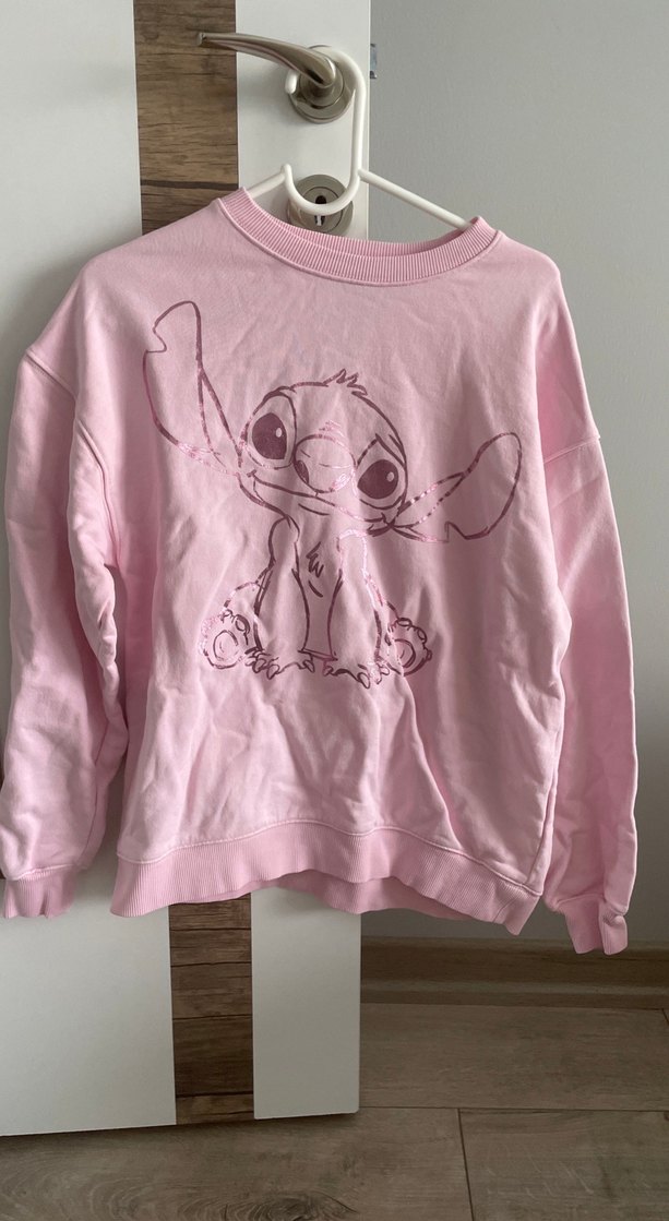 Pamuklu, örgü dokulu, uzun kollu, yuvarlak yakalı, bol kesim pembe baskılı sweatshirt. Günlük rahat kullanıma uygun.