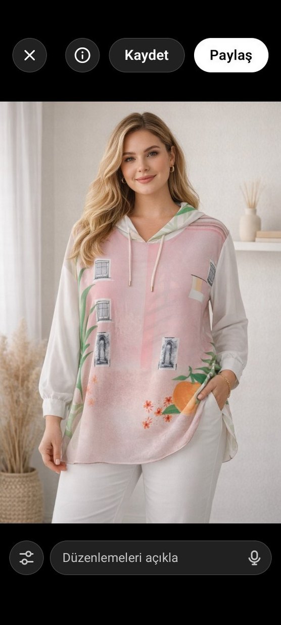 Pembe baskılı, , uzun kollu, bol kesim sweatshirt. Yumuşak sentetik kumaştan, drapeli kesimiyle rahat ve şık bir görünüm sunar. Günlük kullanıma uygundur.