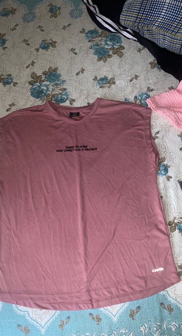 Pembe, kısa kollu, baskılı, yuvarlak yaka kadın tişörtü. Rahat kesimli, sentetik kumaştan üretilmiş, günlük kullanıma uygun. Sporcu tshirt orijinaldir