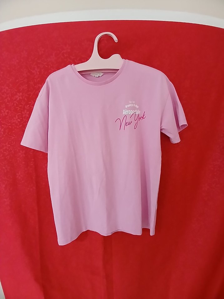 Bu pastel pembe cocuk tişörtü, yuvarlak yakalı ve kısa kollu, bol kesimlidir. Baskılı deseni ve sentetik kumaşıyla günlük şıklık sunar. Trend sokak stili için uygundur.