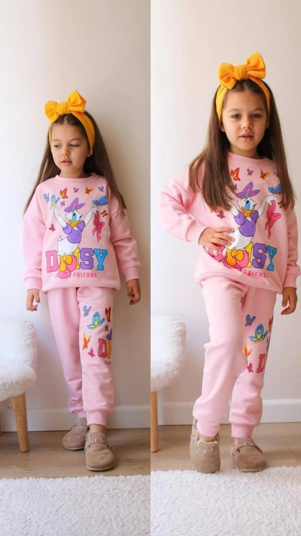 Pembe Baskılı Kız Çocuk Eşofman Takımı