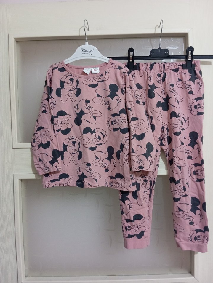 Pembe renkli, baskılı desene sahip kız çocuk eşofman takımı, bol kesim, uzun kollu ve yuvarlak yaka detaylarıyla rahat bir kullanım sunar.