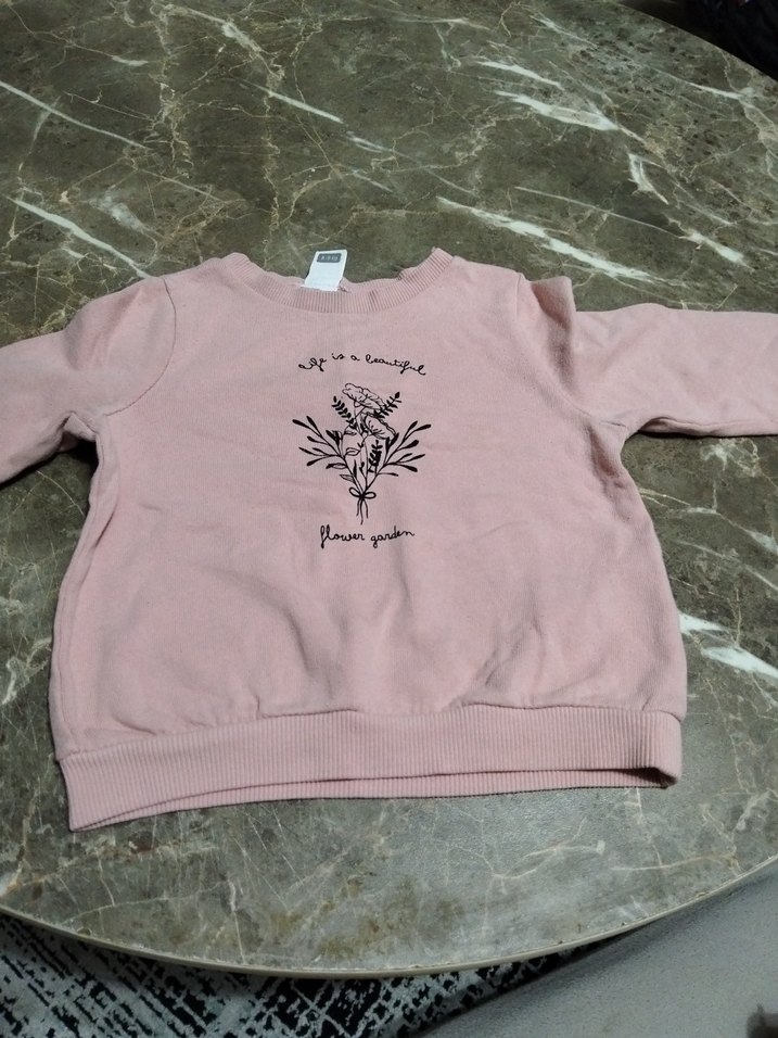 Pembe renkli, uzun kollu, yuvarlak yaka kız sweatshirtü, bol kesim ve baskılı çiçek desenine sahip, yumuşak ve sıcak kumaştan yapılmıştır.