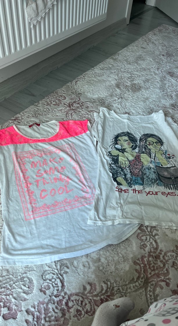 Pembe Baskılı Kız Tişörtü, Kısa Kollu, Bol Kesim