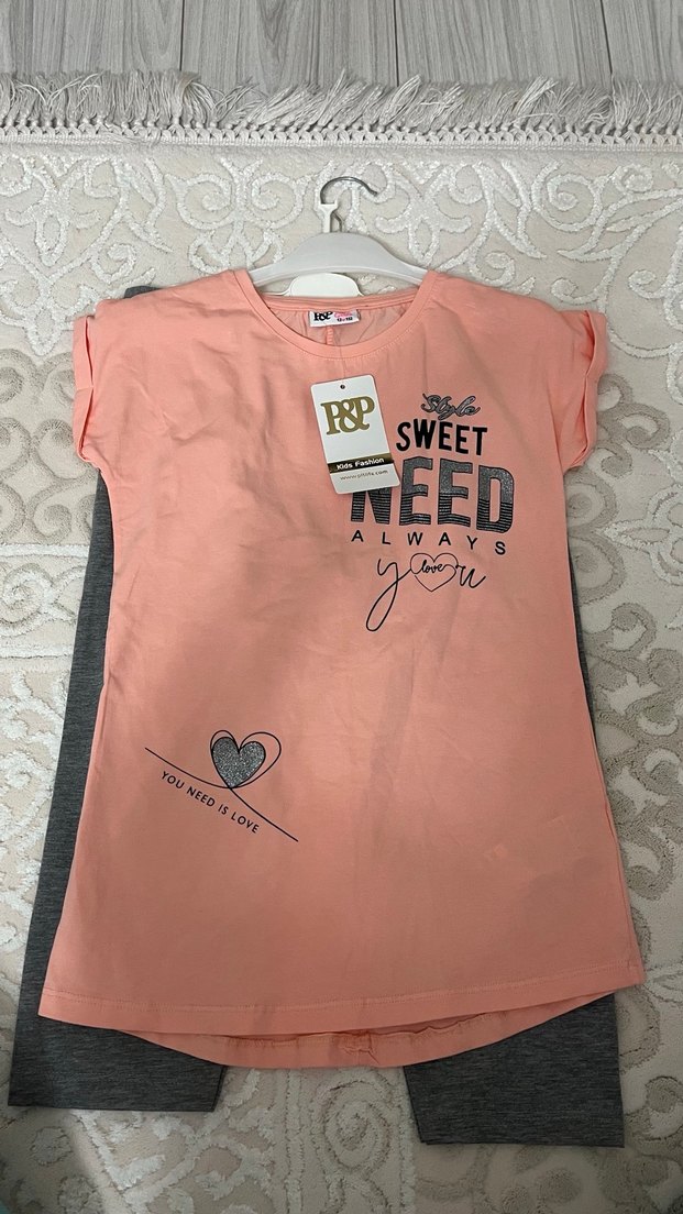 Pembe renk, kısa kollu, salaş kesim kız tişörtü. Baskılı yazılar ve örme detaylar içerir. Yumuşak ve sıcak kumaştan üretilmiştir.