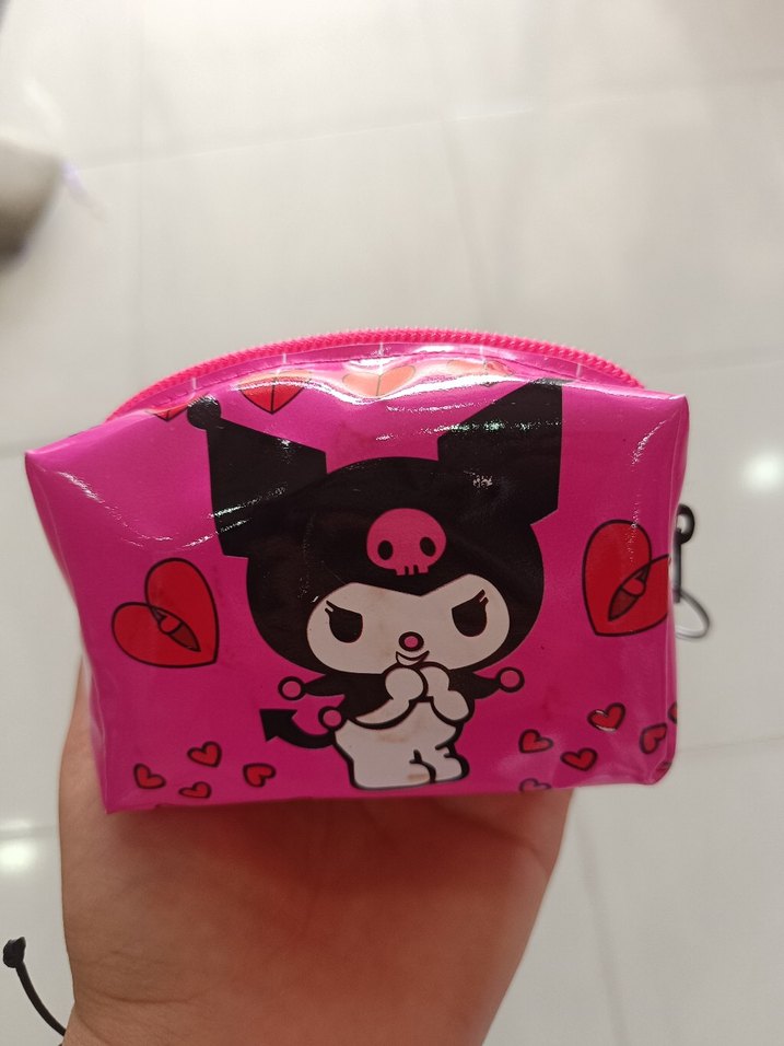 Kuromi çocuk cüzdanı.Canlı pembe renkte, fermuarlı, gotik tarzda baskılı makyaj çantası. Plastik malzemeden yapılmıştır, günlük kullanım için uygundur.