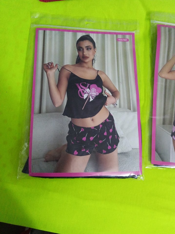 Pembe Baskılı Mini Kadın Pijama Takımı