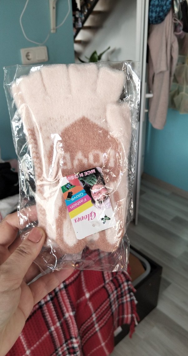 Pastel pembe renkli, örgü yapıda baskılı kız eldivenleri, yumuşak kumaşla sokak modasına uygun.