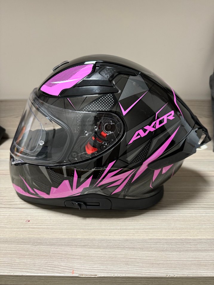 Pembe Baskılı Parlak Biker Motosiklet Kaskı AXOR