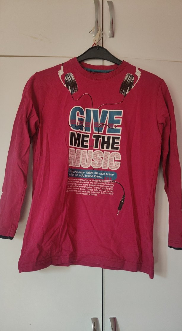Pembe renkli, baskılı, uzun kollu, duz kesim Yuvarlak yaka ve , yumuşak ve kaliteli penye