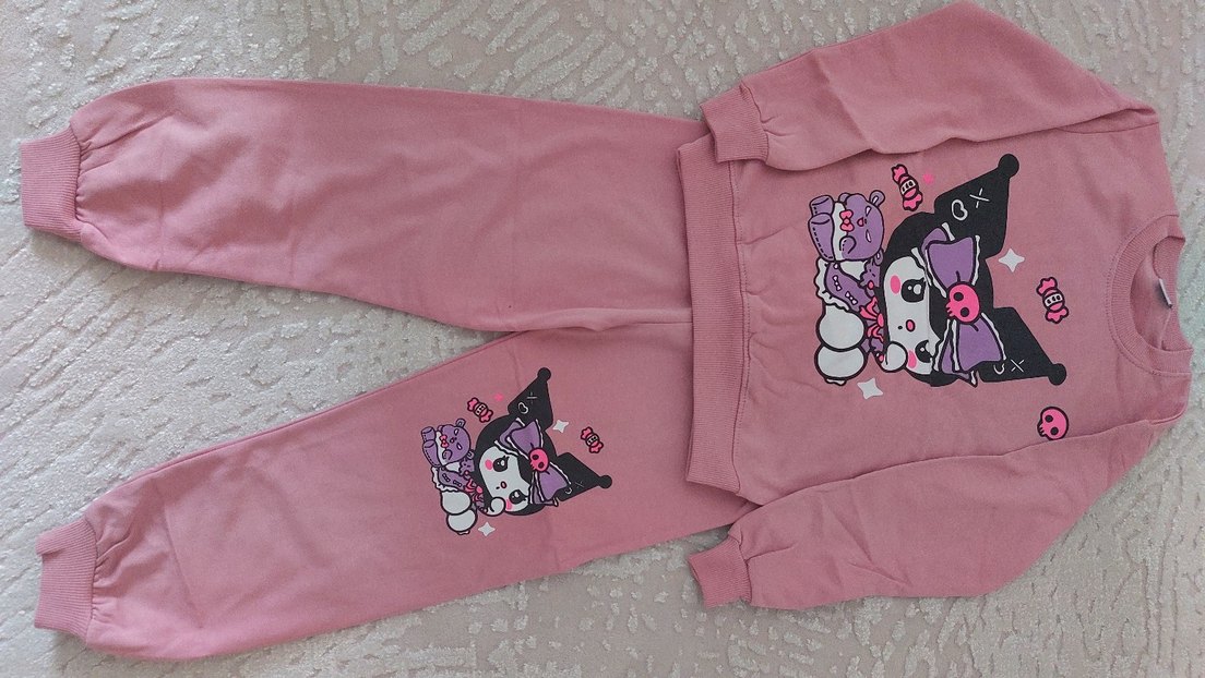 Pastel pembe renkli, uzun kollu ve örme dokulu bebek kız takımı. Üst ve pantolonda baskılı desenler bulunur, yumuşak kumaştan üretilmiştir. 3 iplik sardonlu. bedenleri mevcuttur sormadan almayınız.
