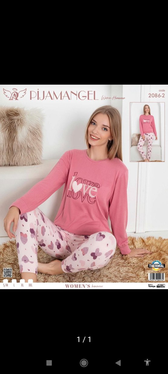 Pijamangel markasının pembe, uzun kollu ve bol kesim kadın pijama takımı. Üstte "love" yazılı baskı ve desenli alt pantolon bulunur. Rahat ve sıcak tutar. Ürün sıfır etiketlidir ✨ Termal kışlık yumuşak kumaştır. S M L XL XXL bedenleri mevcuttur ✨