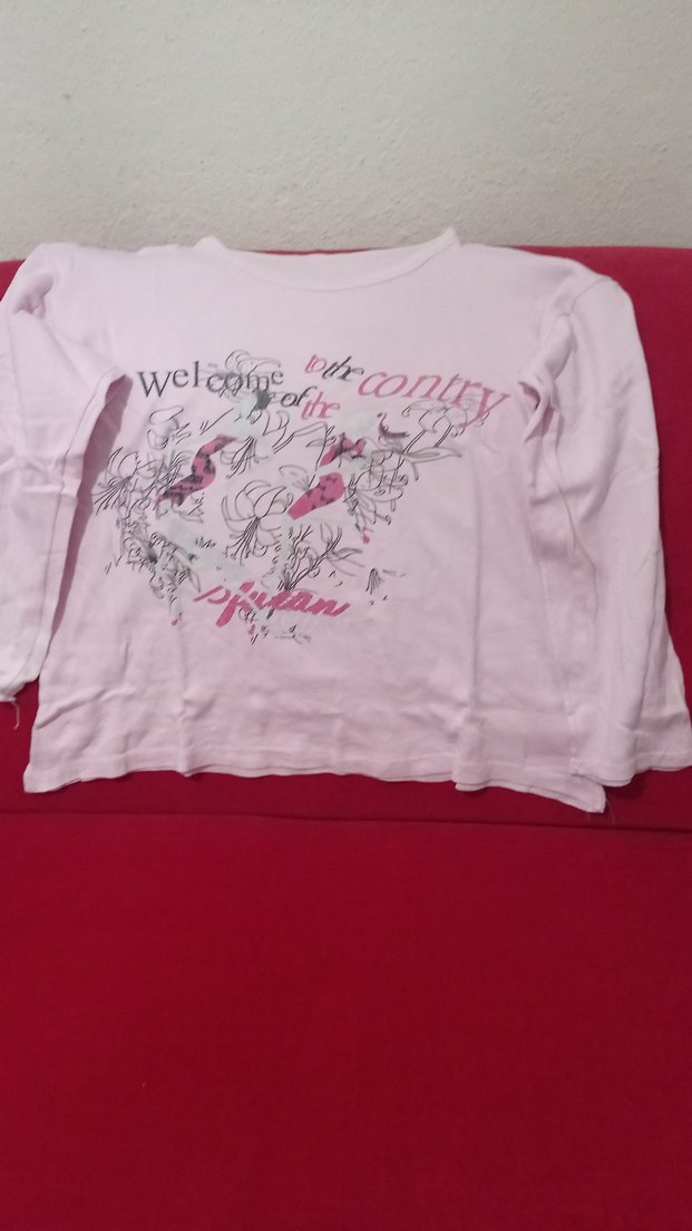 Pembe renkli, pamuklu ve bol kesim uzun kollu kız tişörtü, baskılı deseniyle dikkat çekiyor.