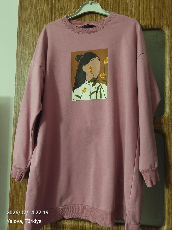 Pembe Baskılı Uzun Kollu Salaş Sweatshirt