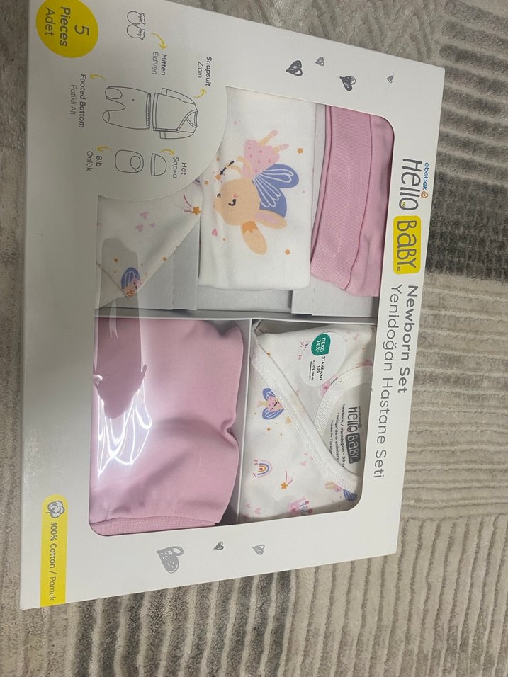 Pembe Baskılı Yenidoğan Kız Seti Velcro