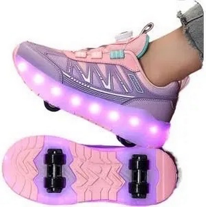 Pembe baskılı, yüksek topuklu kadın spor ayakkabısı, cırt cırtlı ve kauçuk tabanlıdır, sokak stili ve spor rahatlığını birleştirir.