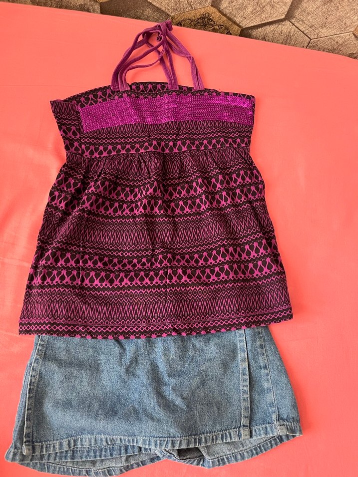 Renkli batik desenli, pembe renkli, bol kesim kısa hamile eteği. Kemerli bel detayı ve denim kumaştan yapılmıştır. Günlük kullanıma uygun bohem tarzda.