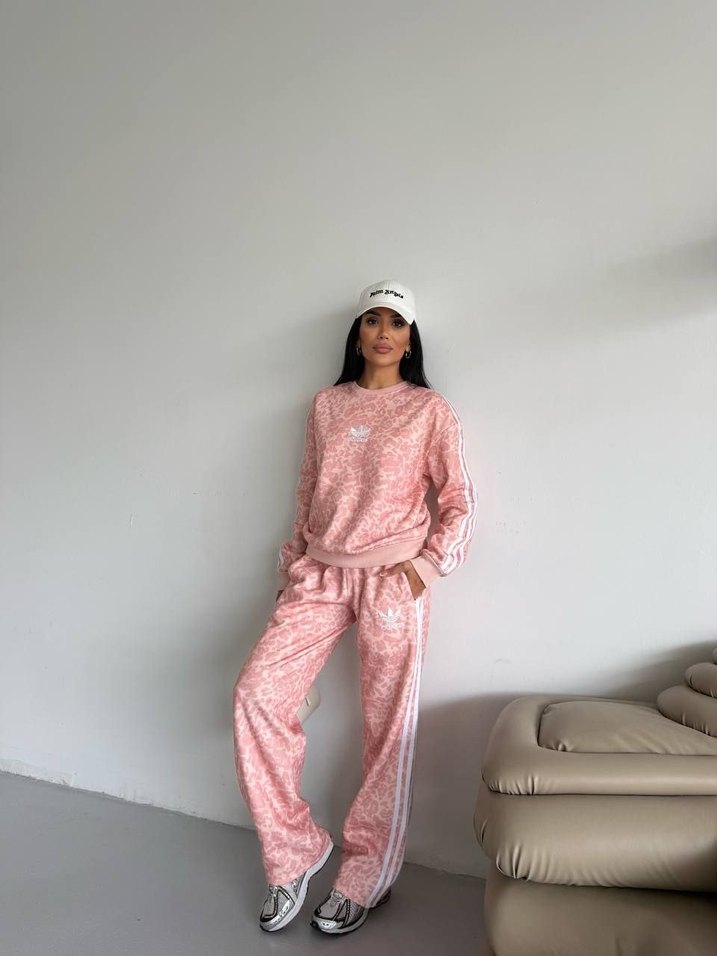 Pembe batik desenli, uzun kollu, yuvarlak yaka kadın eşofman takımı. Rahat kesimli ve yumuşak sentetik kumaştan üretilmiştir. S beden m beden L beden XL beden mevcuttur diz izi pamuklama yapmaz yıkama sorunu yok uzun ömürlü 2 iplik kumaş
