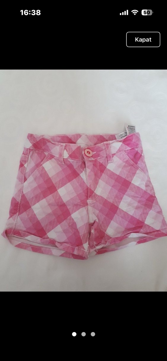Yumuşak sentetik kumaştan, düğmeli ve pembe batik desenli, trend bir görünüm sunan fitted kız şortu.