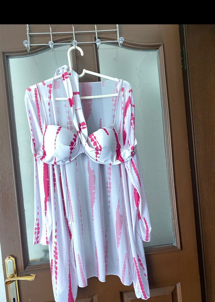 Renkli batik desenli, pareo ve bikini üst. Şık ve tarz bir takim