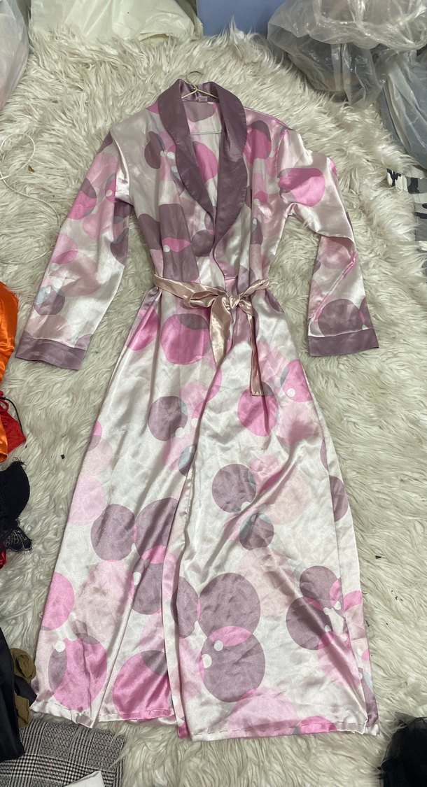 Pembe Batik Desenli Uzun Kadın Sabahlık