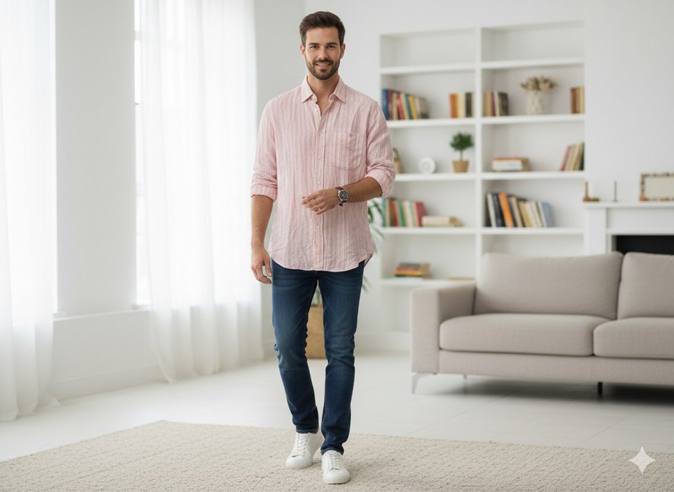 Pembe Batik Desenli Uzun Kollu Erkek Gömlek