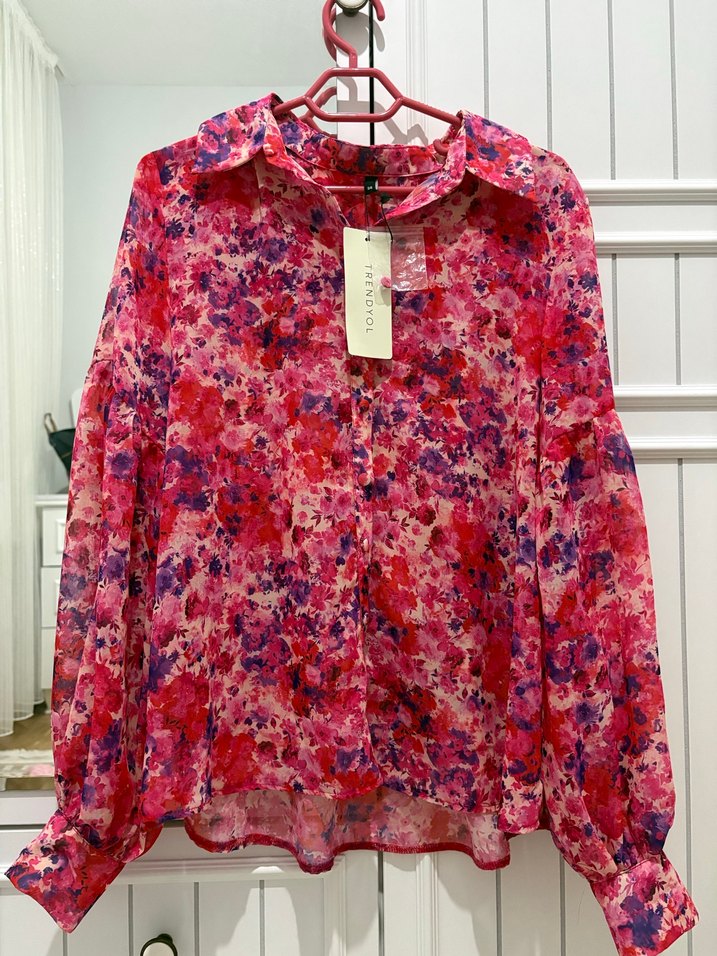 Şifon çiçekli gömlek yeni etiketli
