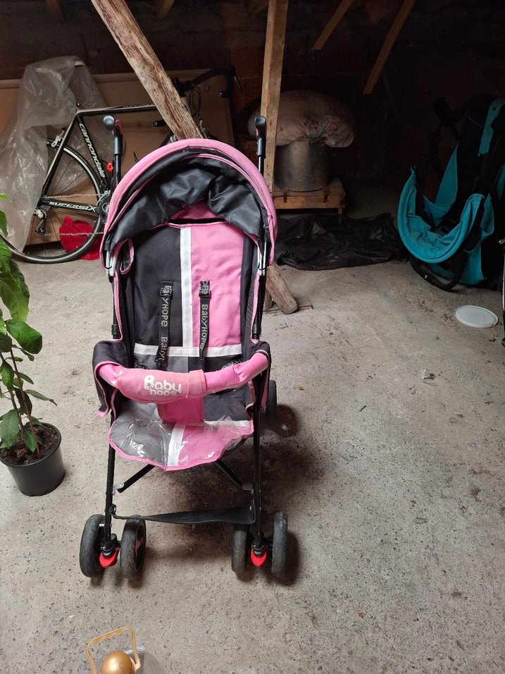 Pembe renkli bebek arabası, koruyucu tente ve konforlu oturma alanına sahiptir. Dayanıklı tekerlekleri ile kolay hareket sağlar. Kızım büyüdüğü için satıyorum.