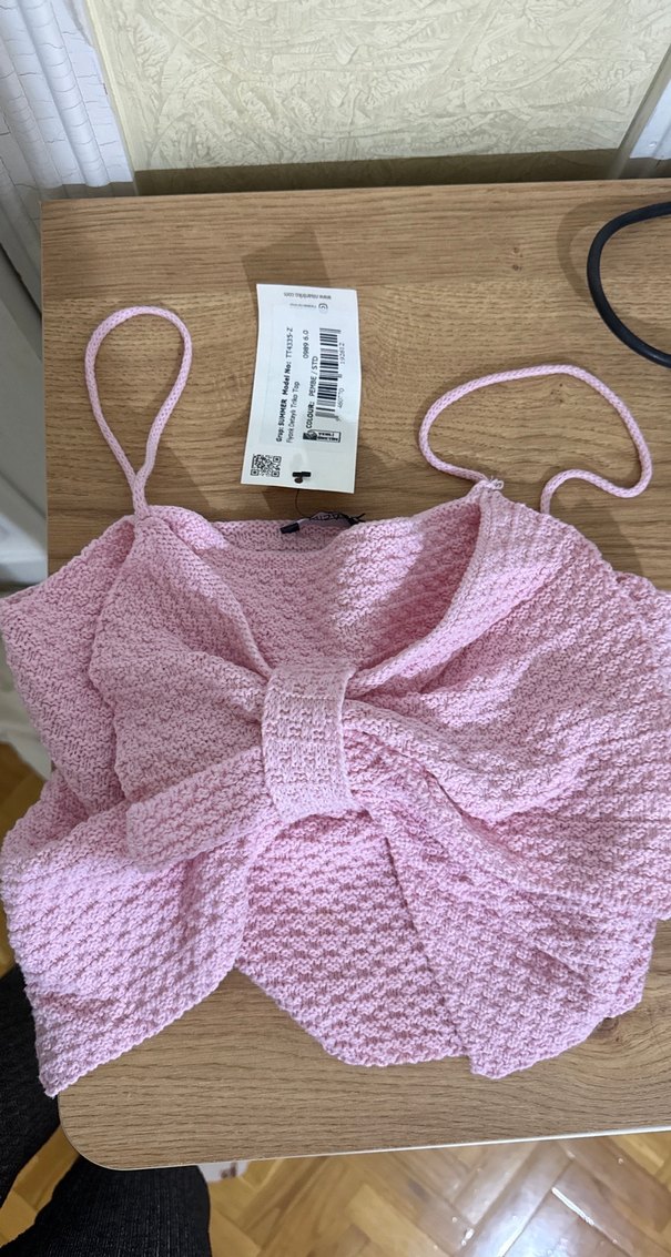 Pembe Bebek Askılı Örgü Üst