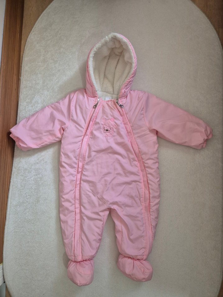 Pastel pembe renkte, fermuarlı ön kısmı ve yumuşak astarlı kapüşonu olan bebek tulumu. Notched lapel yakalıdır. ❄️ Herhangi bir deformesi yok. Çift fermuarli olmasi küçük bebekler için aşırı kullanım kolaylığı sağlıyor giydirmesi çıkarması çok kolay. Sıcak tutan kalın bir astronot mont