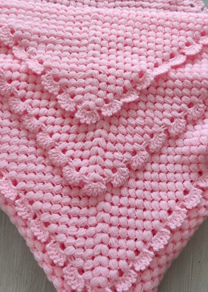 90x97 ölçülerinde pembe el örgüsü bebek battaniyesi